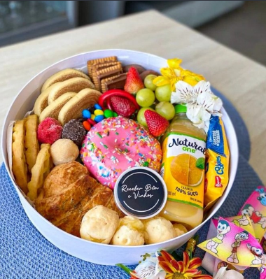 “Surpreenda os pequenos com uma cesta de café da manhã especial! Recheada de guloseimas, como bolinhos, cereais e sucos. Um início de dia cheio de energia, alegria e diversão. Confira nossas opções e encante as crianças!” 🌟🥐🎉